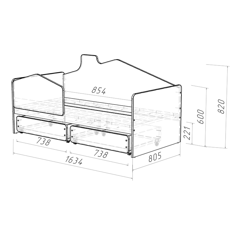Съемный бортик безопасности является важным элементом кровати "Легенда K203.02 домик". Он может быть установлен в любом месте по периметру кровати или просто убран в зависимости от потребностей вашего ребенка, обеспечивая безопасность во время сна и игр. Кроме того, кровать обработана мягким противоударным кантом, что предотвращает возможные травмы.