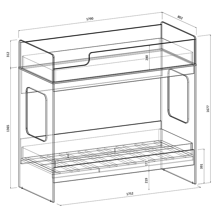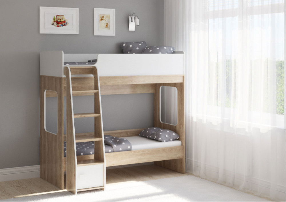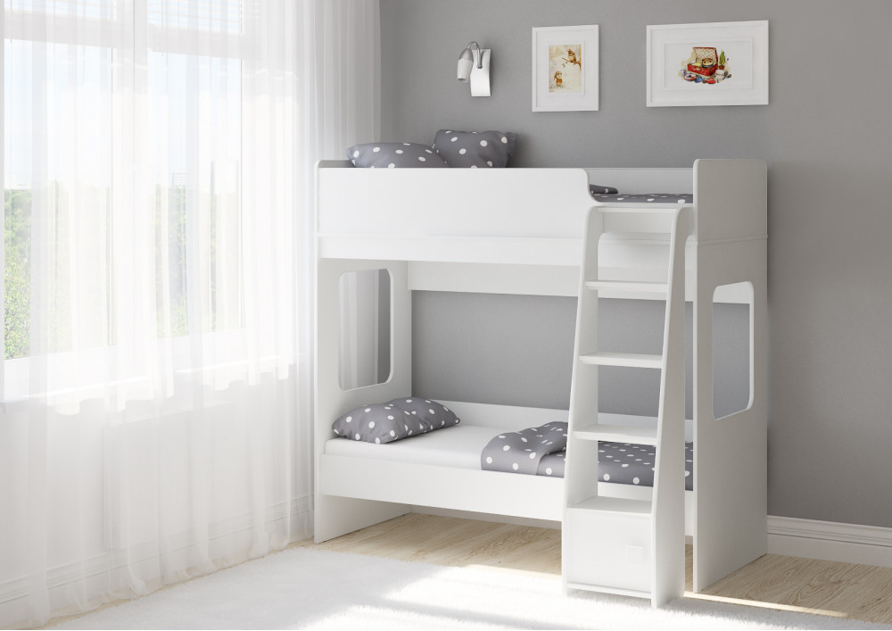 Классическая детская двухъярусная кровать с двумя параллельными спальными местами размером 1750х750.