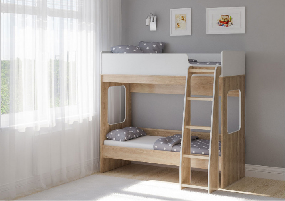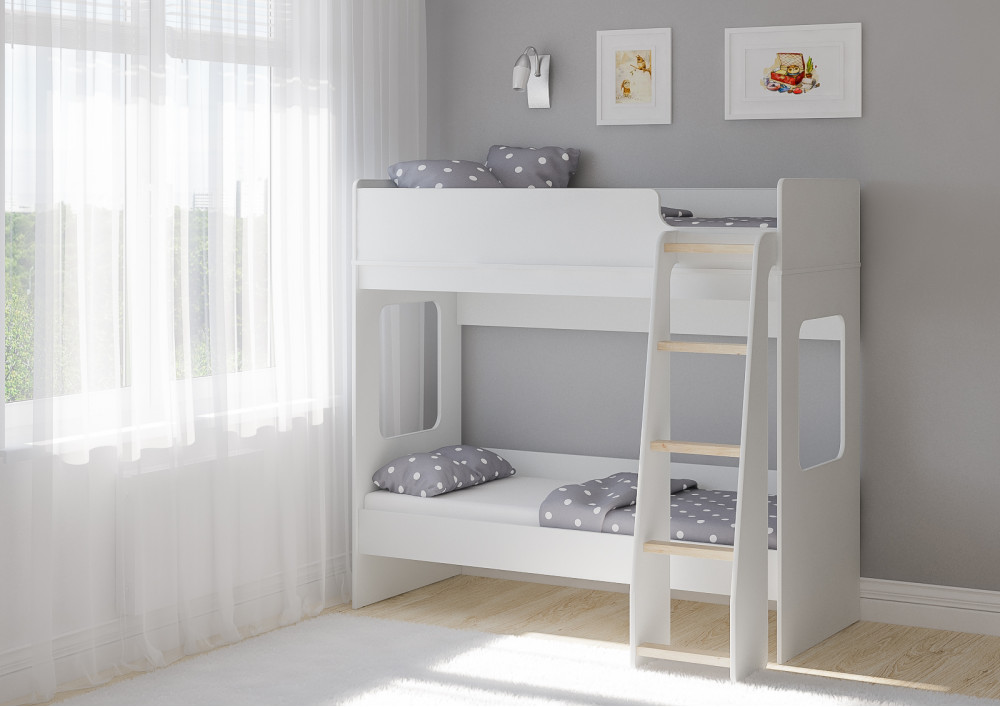 Классическая детская двухъярусная кровать с двумя параллельными спальными местами размером 1750х750 или 1900х750