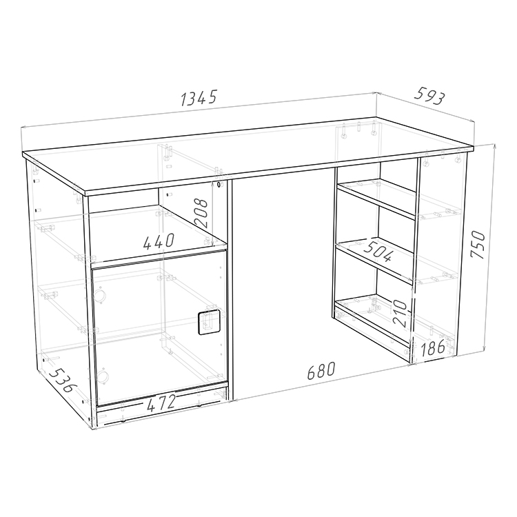 Тумба с двумя полками обеспечат удобное хранение канцелярии, письменных, учебных и прочих принадлежностей.