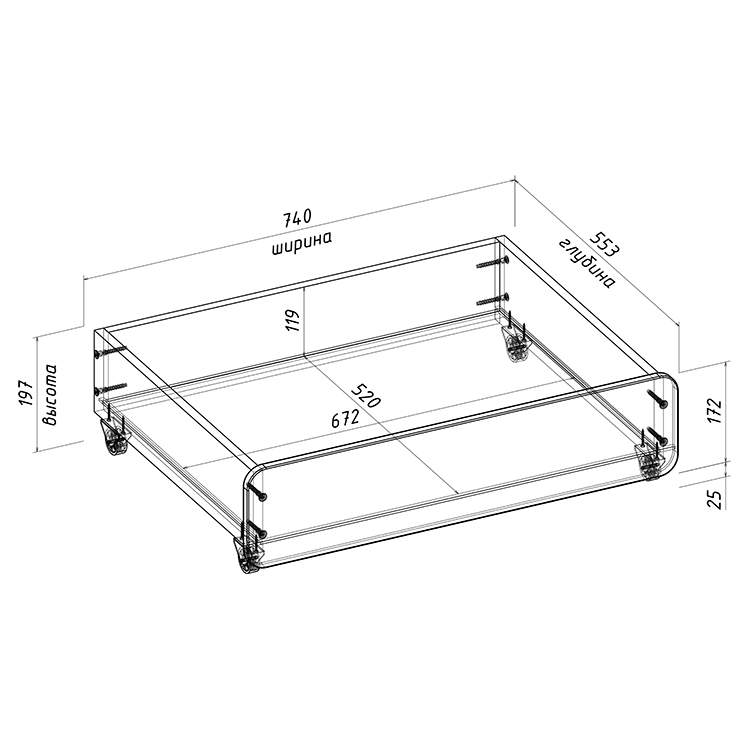 Длина/Ширина/Высота (мм) 740 × 553 × 197